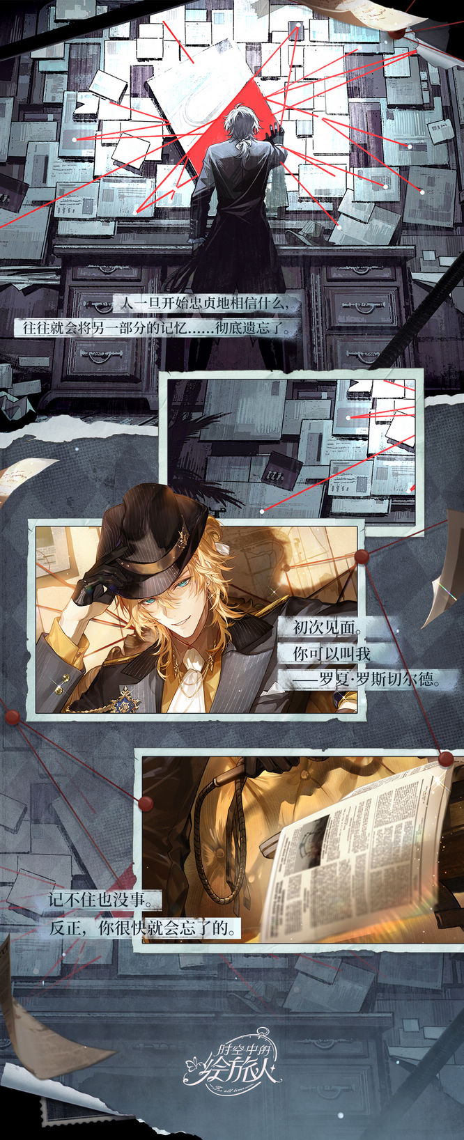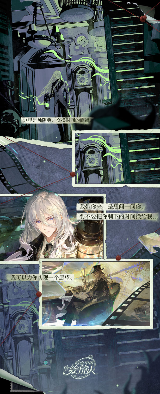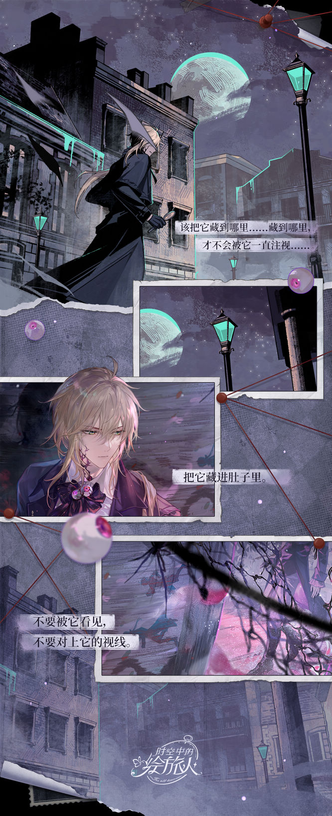 7月10日更新后 - 7月30日05:00,获取[庄园诡戏]活动SSR画灵后,即可获取对应男主主题二星绘卷:艾因[烬处余温]、路辰[月蚀之瞳]、罗夏[乱局寻迹]、司岚[往日回旋]、叶瑄[孤灯长明]。