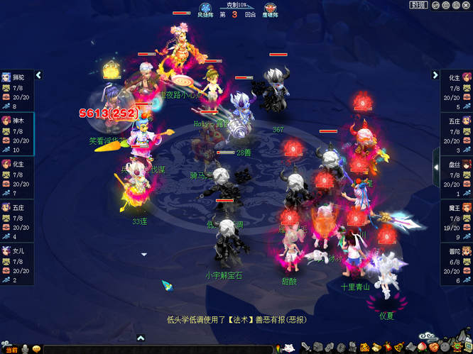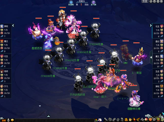阳关城与燕赵风云的比赛中,阳关城选择五辅助阵容迎战对方212阵容,并且阳关城开局鸟阵小克对方龙阵5%。比赛开始后,阳关城在第1回合先发制人,小死亡挂中对方狮驼岭后利用善恶宠的轮番进攻将其点掉,而燕赵风云也果断出手,魔王寨一招“秘传飞砂走石”直接将对方化生寺瞬秒。