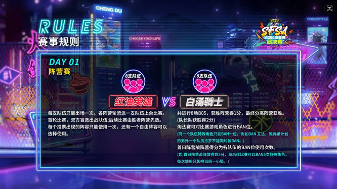 首日的比赛为红油英雄VS白汤骑士的阵营战。
