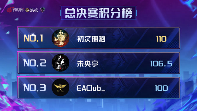 未央亭门派以106.5分紧追其后获得了亚军,季军则由EA丶Club_门派以100分收入囊中。