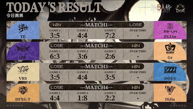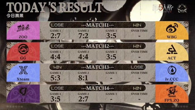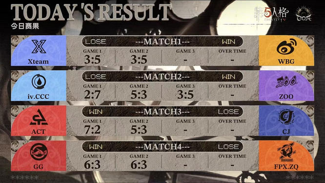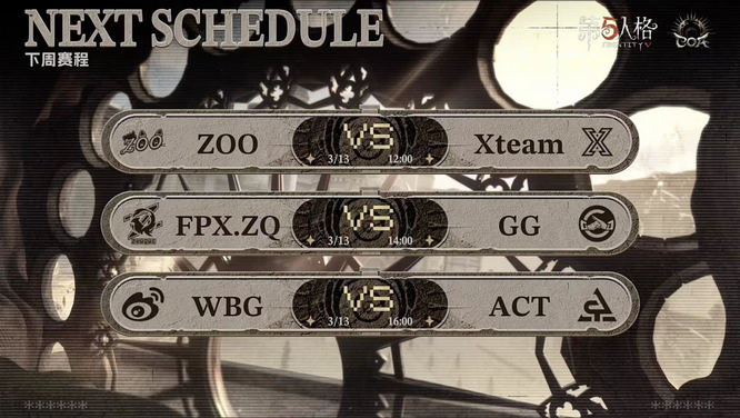 下周,胜者组将直接角逐出两个晋级名额,北京WBG、ACT、TE和Gr四支战队谁能捷足先登呢?FPX.ZQ再遇成都GG,ZS.Lin再遇DOU5战队,老对手重逢,又会擦出怎样的火花呢?敬请在下周五中午12点锁定第五人格赛事官方直播间,关注更多精彩比赛。