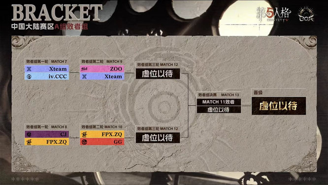 第一天成都GG vs FPX.ZQ第二局下半场,成都GG求生者齐心协力牵制,四跑裁定乾坤:开局杂货商追击小树林的杂技演员,杂技演员跳球规避藤蔓,借助弹射反走拉开身距。吃刀后,中场的弓箭手帮挡藤蔓并补上一箭,陪跑帮助杂技演员拉开距离。杂技演员顺利吃出闪现倒地。一救下椅,杂技演员连续规避抽刀和碎石,拖出化险为夷时间并使得气象学家修开自己的密码机前来陪跑。利用气象学家的陪跑,杂技演员连续转点,直到开门战才第二次被击倒。杂货商挂上杂技演员后传送,卡中场的佣兵极限救下杂技演员,杂技演员反拉干扰耳鸣,顺利地窖逃生。拿下四跑终结比赛。