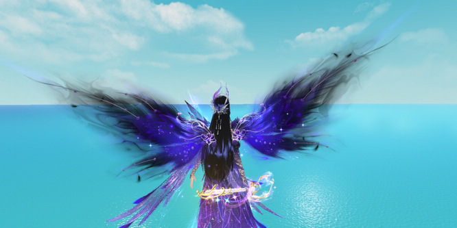【云垂幽羽·紫薇】威风凛凛,深邃的黑与浓郁的紫在这双羽翼上完美交融。串串珍珠藏匿在细长的羽毛间,好似浩瀚宇宙中的璀璨星辰,让人不禁遐想连篇!