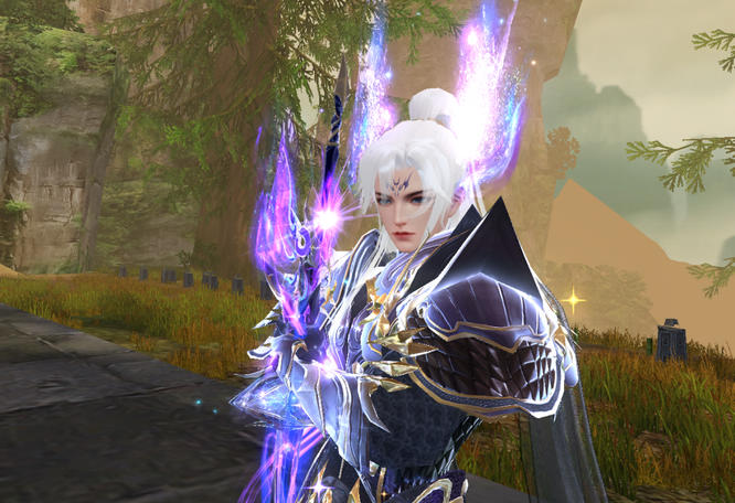 少侠穿上【神武八荒】的铠甲,挺拔潇洒的身姿立于林间。高束白发,精神抖擞,鬓间幻化出五彩流光,眉宇间透出的威严让少侠更有武神之姿,勇武庄重,不怒自威!