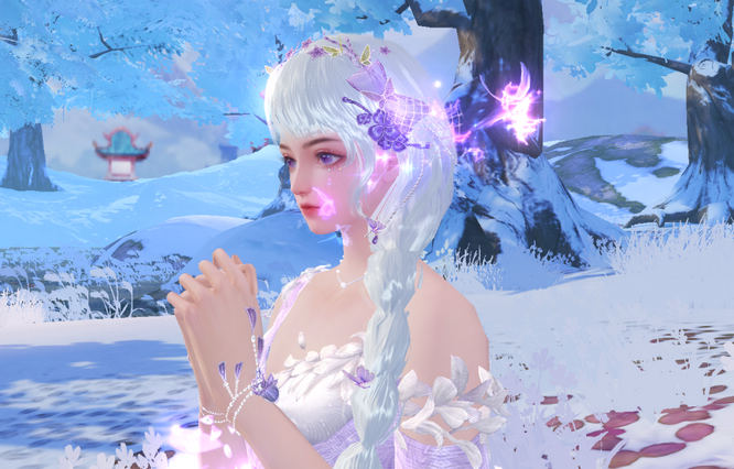 少女身着【孤月点萤】,几缕碎发散在耳边,淡紫色的眸中似藏有绚烂宇宙,零落晨星在眼角发出点点荧光,连翩蝶也忍不住靠近这倾城之色!