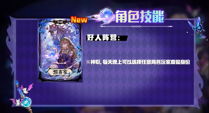 全新板子“寻香识命”正式上线,12人进阶场板子配置为寻香魅影、3名狼人、觉醒预言家、女巫、猎人、守卫及4个平民。其中觉醒预言家每天晚上可以选择任意两名玩家窥视其身份,从而判断其中是否有狼人。