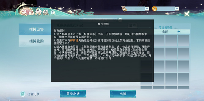 妖魔集市可跨服摆摊交易功能