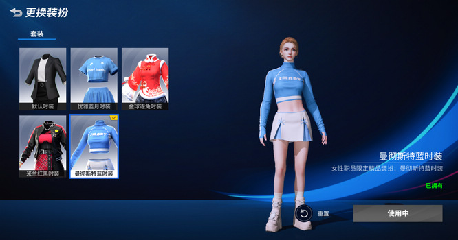 3月16日,《绿茵信仰》开启更衣室换装系统,大家可以进入主界面的【更衣室】,为我们美丽的职员更换时装!同时商城上新两套女性职员新装扮,曼彻斯特蓝精品时装和米兰红黑精品时装。经典配色、独特设计与精致的裁剪,让奥莉维亚与克洛伊更具魅力!