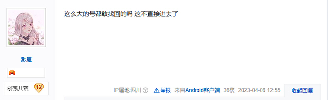 这两天,当“天涯明月刀OL”的吧友打开贴吧之后着实被一则账号被找回的帖子惊吓一跳。原因无他,只因为被找回账号的价值竟然高达150W软妹币。如此惊人数目,让看惯了挥金如土的吧友和游戏玩家们也不由得咂舌,连忙说道:“这次的找回狗真的很刑”,同时纷纷在帖子下留言插眼,支起小马扎抱起西瓜,欲了解事情的下一步发展情况。