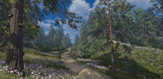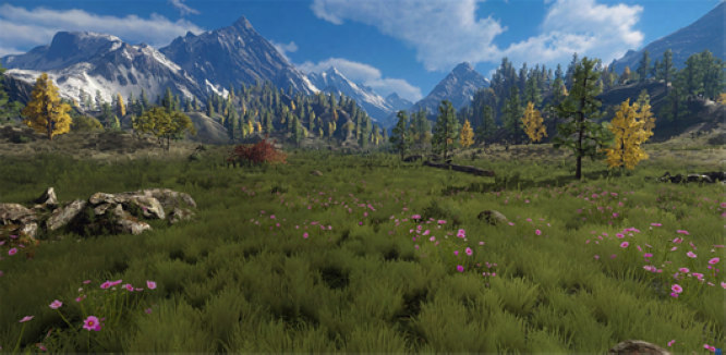 不仅如此,AIGC技术还将自动识别不同颜色的简笔线条代表的大量参数,包块地表材质、植被分布、道路走向等因素,在游戏中搭建出更加贴合玩家需求的场景效果图。比如有玩家选择森林环境,最终生成的地图中高大树木郁郁葱葱,四周群山环抱。