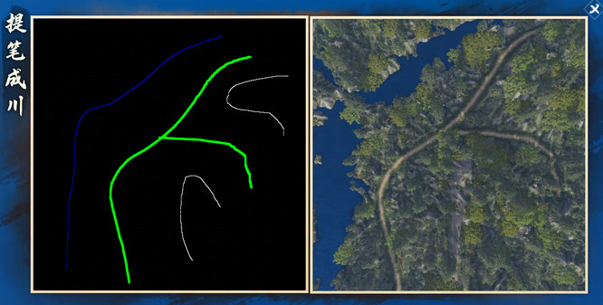 据官方爆料,【提笔成川】玩法中所用到的所有AI模型都基于真实且庞大的卫星图数据,自动生成对应地形的高度图,从线条迭代成2D图片。并且在可视化这一环节,AI还会计算出地形各处的几何特征,力求从细节处做到极致真实。