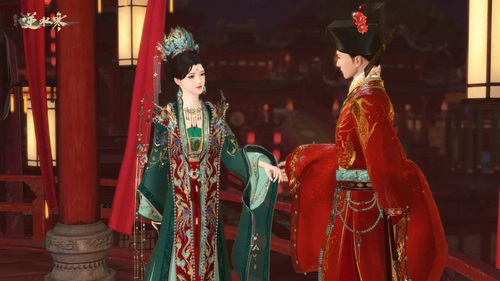 从逆水寒官方爆料来看,这一次的结婚四周年纪念时装,是考据了许多古籍文画设计而成的正统宋制婚服,不同与大众印象中的“双红色”婚服配置,而是遵循了大宋时期的“红男绿女”特点,大红配深绿,再现了真正的宋制婚服模样。
