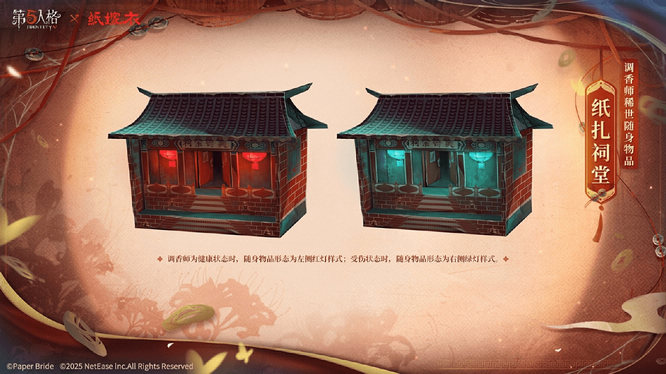 2025年7月3日维护后-2025年7月30日23点59分,第五人格×纸嫁衣小程序联动活动上线,微信搜索【网易第五人格】官方小程序,参与活动可获得【头像框】纸嫁衣等奖励!